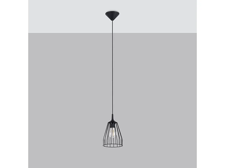 Lampes suspendues Leyo industriel en acier - 1 sources lumineuses - L.15 x H.85 cm - noir