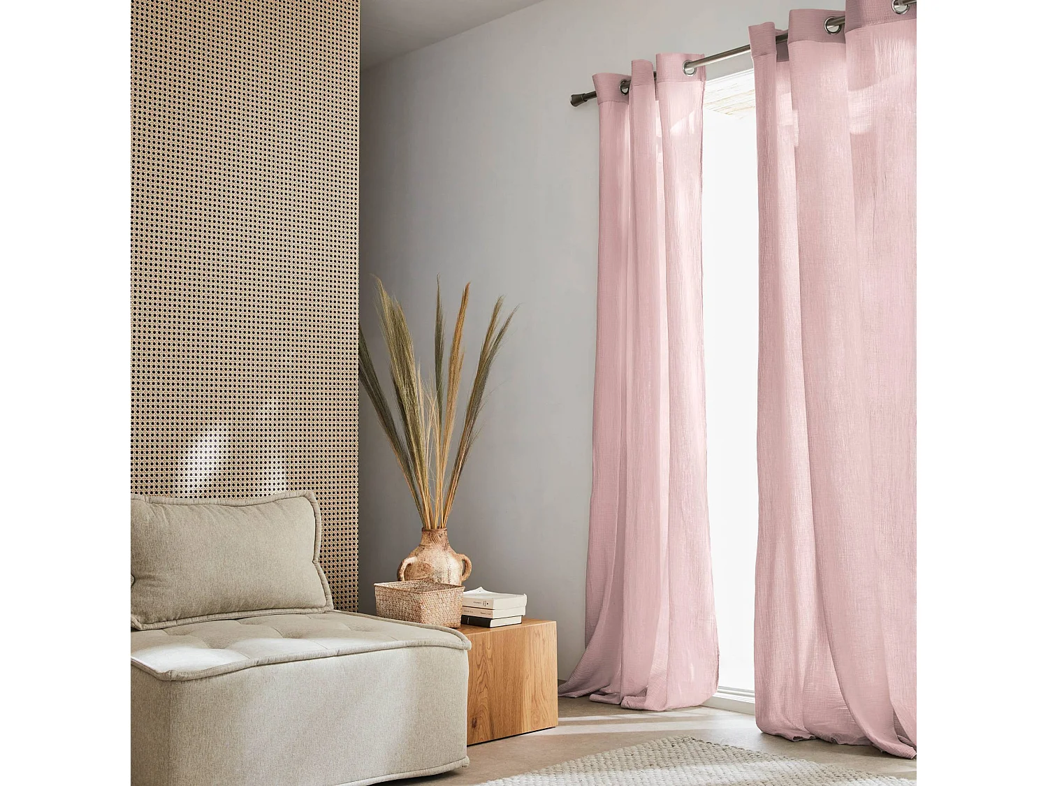 Set de 2 rideaux en gaze de coton rose. tissu gaufré. 2x 135x240cm avec œillets